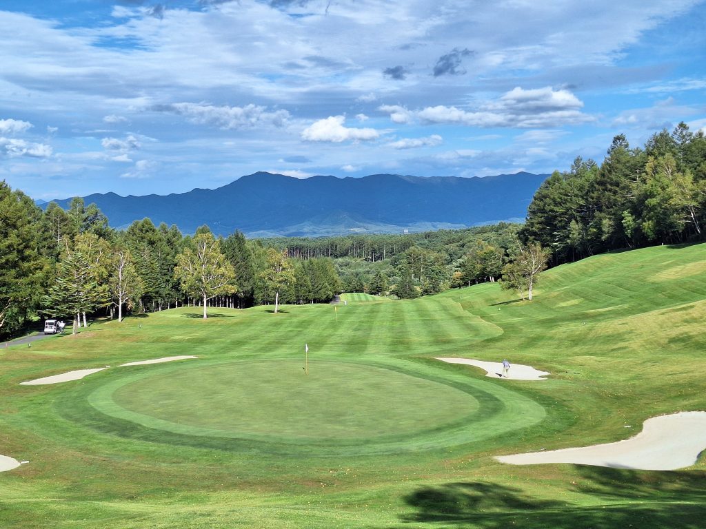 昨日ハーフラウンドでしたが気温も低くて快適にプレー出来ました。クラブハウスのベランダから18番ホールを眺め、由紀枝ちゃんもコースを思い出したようです。(アッ、あそこに鹿がいたよね!)